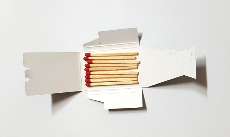 성냥갑은 전통적인 박스형태가 아닌 종이를 접어서 만드는 형태입니다.