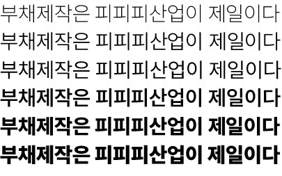 - 다양한 굵기: 7가지 굵기를 제공하여 제목부터 본문까지 다양한 용도로 활용 가능합니다.